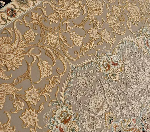 - برجستگی نقشها (طرح برجسته) به فرش بعد بصری میدهد؛ یعنی هنگامی که نور محیط به فرش میتابد، سایه و روشن ایجاد میکند که حس لوکس بودن و عمق را تقویت میکند.