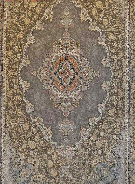 یکی از مهمترین دلایل محبوبیت این فرش، طراحی چشمنواز و هماهنگی رنگهاست. در این مدل، زمینه 1077 که ترکیبی از رنگهای ملایم و روشن است، جلوهای دلنشین و آرامبخش دارد. این رنگ باعث میشود فضا بزرگتر، دلبازتر و روشنتر به نظر برسد. طرح ترنجدار (گل وسط) از دیرباز یکی از نمادهای اصلی فرش ایرانی بوده است. در این طرح، گل مرکزی یا همان ترنج، در مرکز فرش جای گرفته و اطراف آن را لچکها و نقشمایههای اصیل ایرانی فرا گرفتهاند. در این مدل، ترنج بهصورت برجسته بافته شده تا جلوهای سهبعدی و فاخر به مرکز فرش ببخشد و توجه را به مرکز اتاق جلب کند. رنگهای استفادهشده در این طرح شامل طیفی از طلایی ملایم، بژ، نقرهای روشن، کرم و فیلی است که با هم هماهنگی چشمگیری دارند و با انواع دکوراسیونهای کلاسیک و مدرن سازگارند.