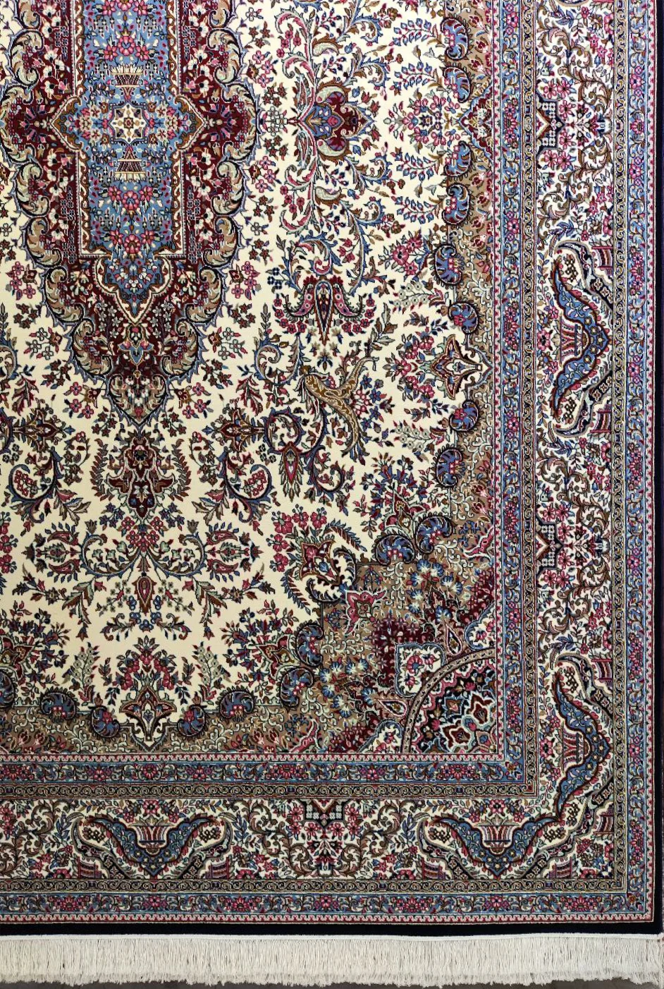 رنگبندی کرم-گردویی-بژ-سورمهای-آبی-لاکی این فرش، نه تنها رنگی گرم و ملایم است، بلکه بهعنوان نمادی از ارزشهای فرهنگی ایرانی شناخته میشود.
