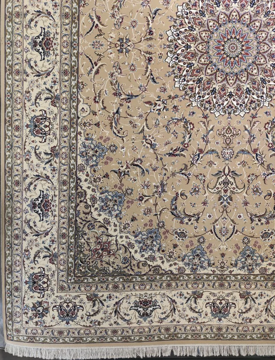 فرش ستاره کویر یزد کلکسیون شاه عباسی: جادوی کویر در هر گره با تراکم 1500 و رنگبندی کرم-گردویی-بژ!