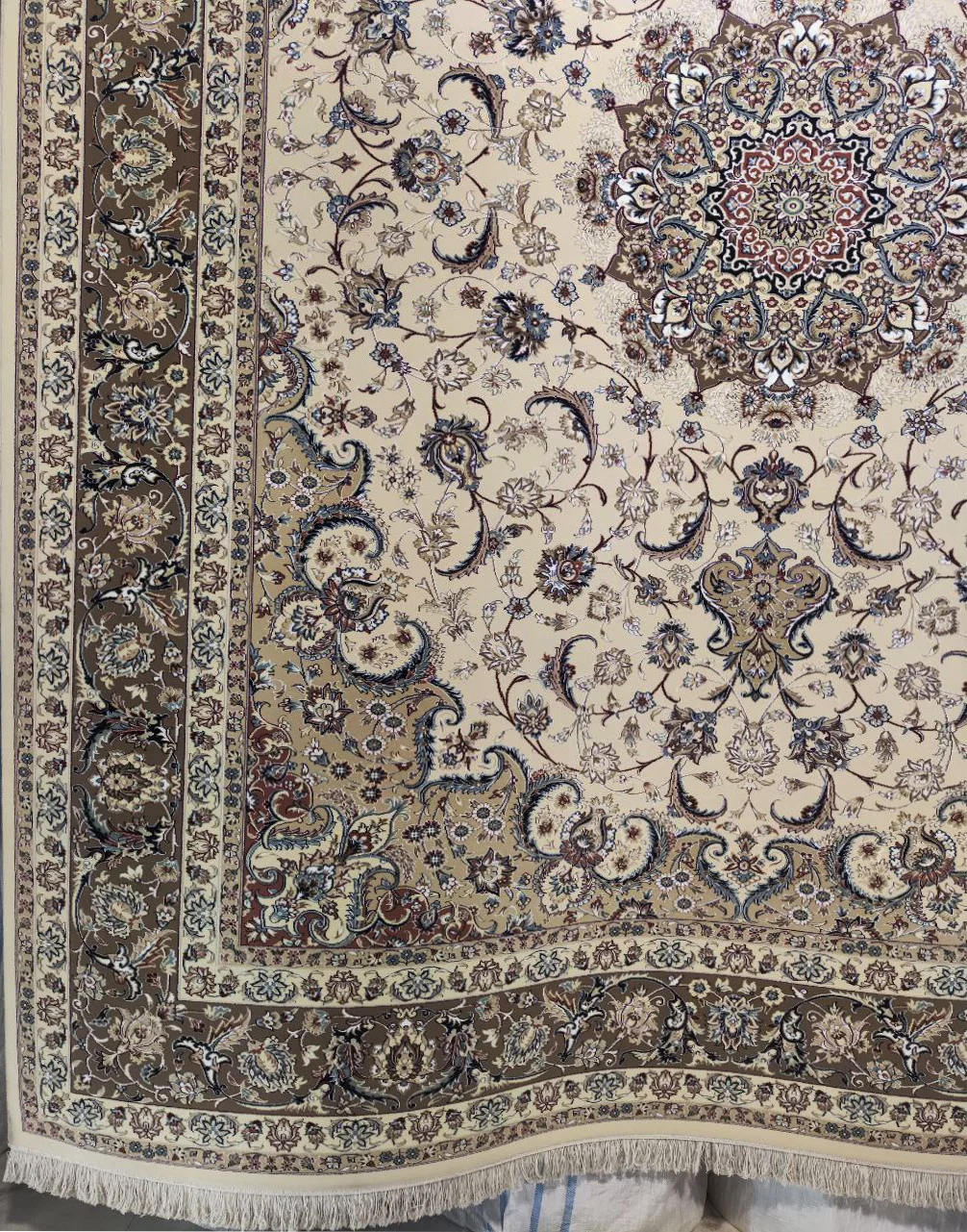فرش ستاره کویر یزد کلکسیون شاه عباسی: جادوی کویر در هر گره با تراکم 1500 و رنگبندی کرم-گردویی-بژ!