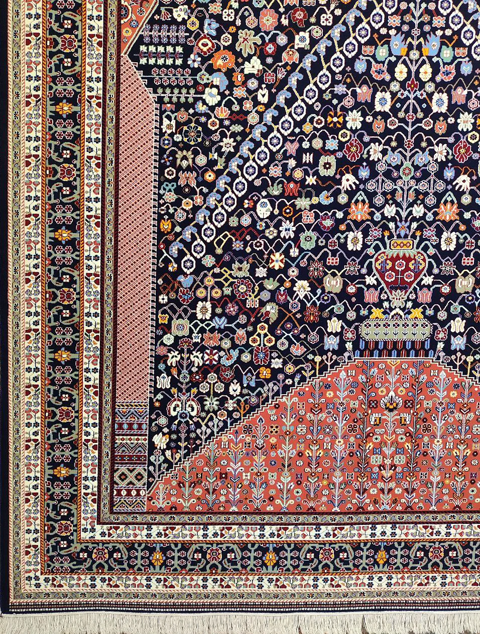 فرش ستاره کویر یزد 700 شانه کلکسیون شاهکار نوین کد YN زمینه سورمه ای (غیربرجسته)
