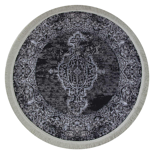 فرش شاهکار شفقی تبریز گرد 500 شانه کد 19215 زمینه طوسی (غیربرجسته)