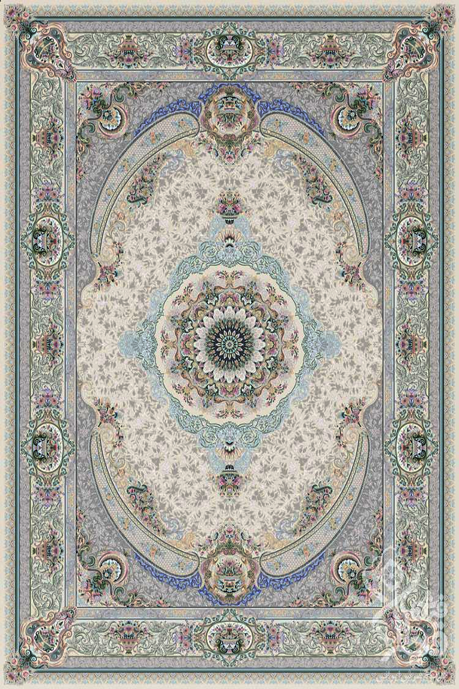 فرش قیطران 1200شانه کلکسیون نوال طرح یاس زمینه کرم حاشیه کرم (برجسته)