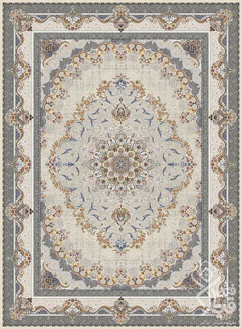 فرش قیطران 1200 شانه طرح نسترن زمینه کرم حاشیه کرم (برجسته)