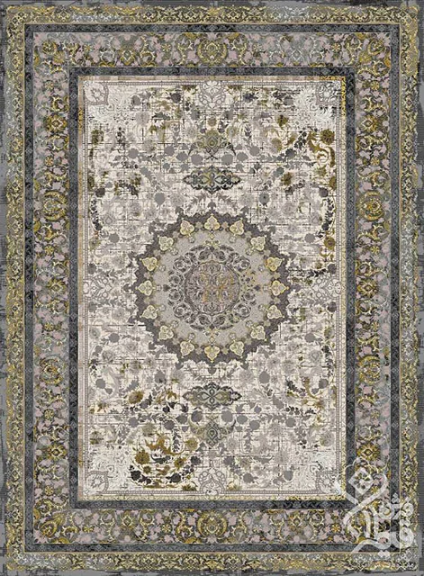 فرش قیطران 1200 شانه طرح نگین زمینه کرم (برجسته)