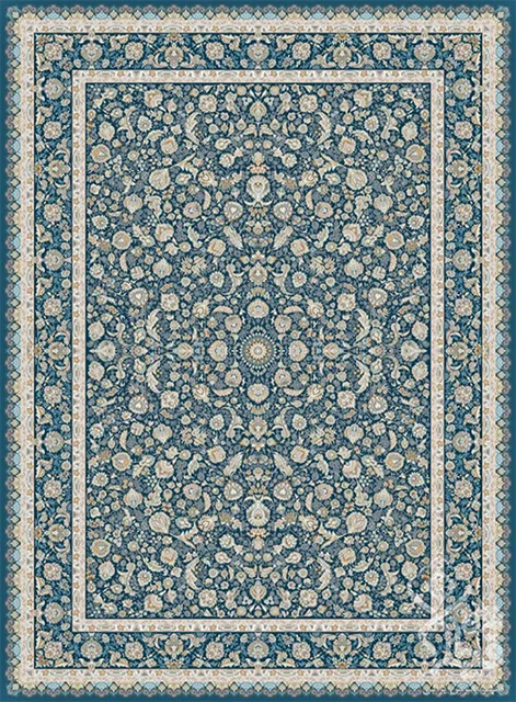 فرش قیطران 1500 شانه طرح آبتین زمینه سورمه ای (برجسته)