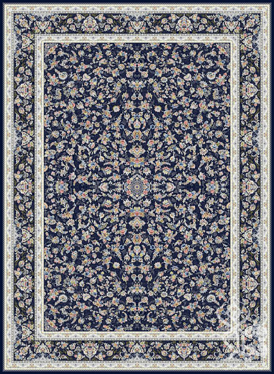 فرش قیطران 1500 شانه طرح دارینا زمینه سورمه ای (برجسته)