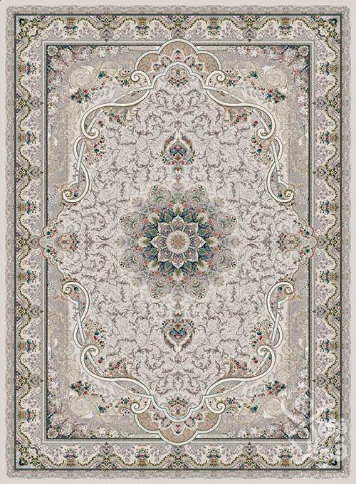 فرش قیطران 1500 شانه طرح راییک زمینه کرم حاشیه کرم (برجسته)