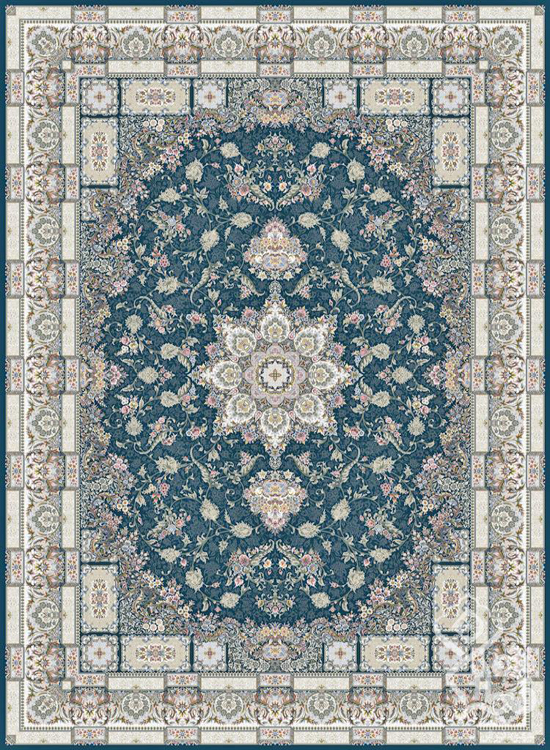 فرش قیطران 1500 شانه طرح سوفیا زمینه سورمه ای (برجسته)