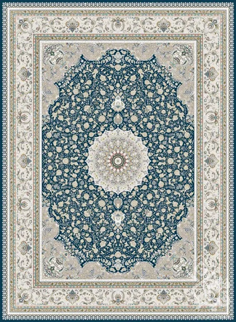 فرش قیطران 1500 شانه طرح فرخنده زمینه سورمه ای (برجسته)