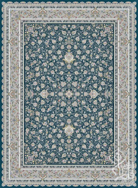 فرش قیطران 1500 شانه طرح فرگون زمینه سورمه ای (برجسته)