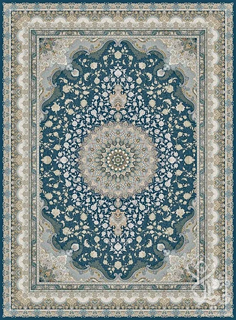 فرش قیطران 1500 شانه طرح پارامیس زمینه سورمه ای (برجسته)