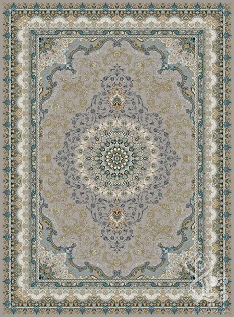 فرش قیطران 1500 شانه طرح پارامیس زمینه نسکافه ای (برجسته)