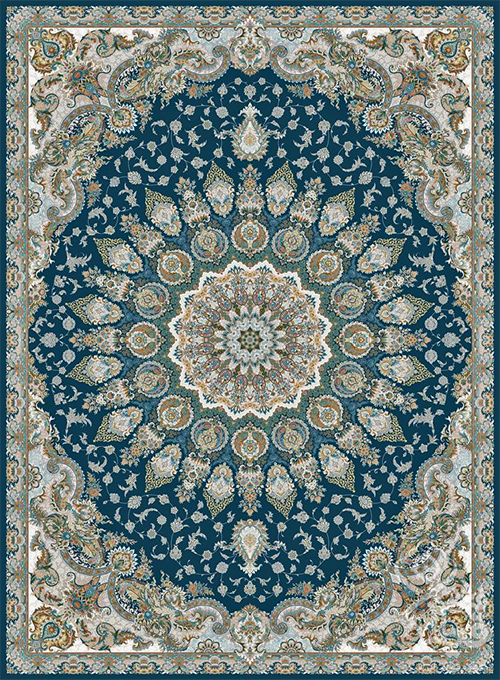 فرش قیطران 1500 شانه طرح پدیده زمینه سورمه ای (برجسته)