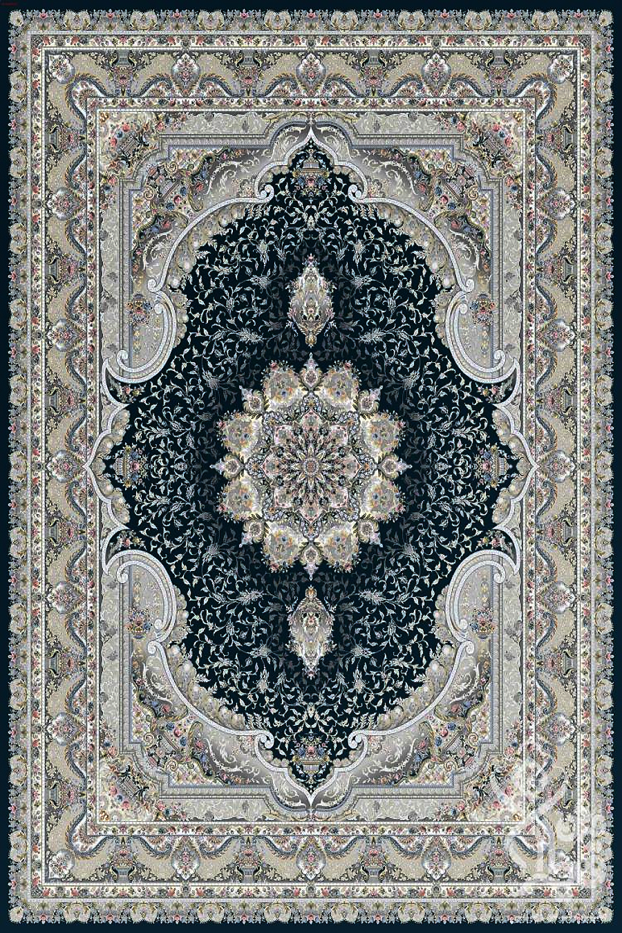 فرش قیطران 1500 شانه کلکسیون سوفیا طرح زامیاد زمینه سورمه ای (برجسته)