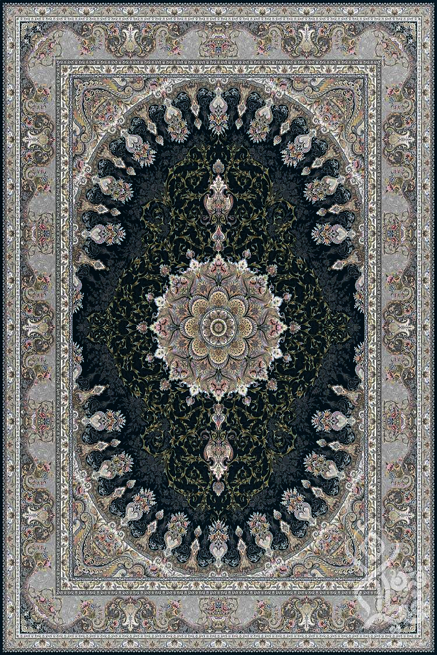 فرش قیطران 1500 شانه کلکسیون سوفیا طرح ناژین زمینه سورمه ای (برجسته)