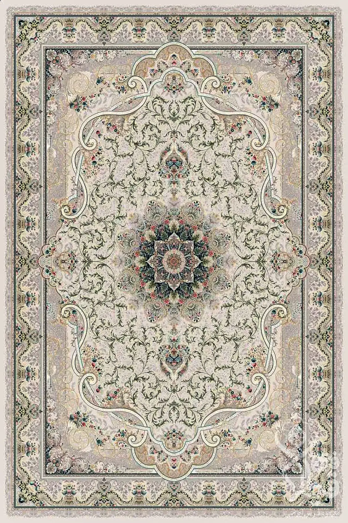 فرش قیطران 1500 شانه کلکسیون فردوس طرح راییک زمینه کرم (برجسته)