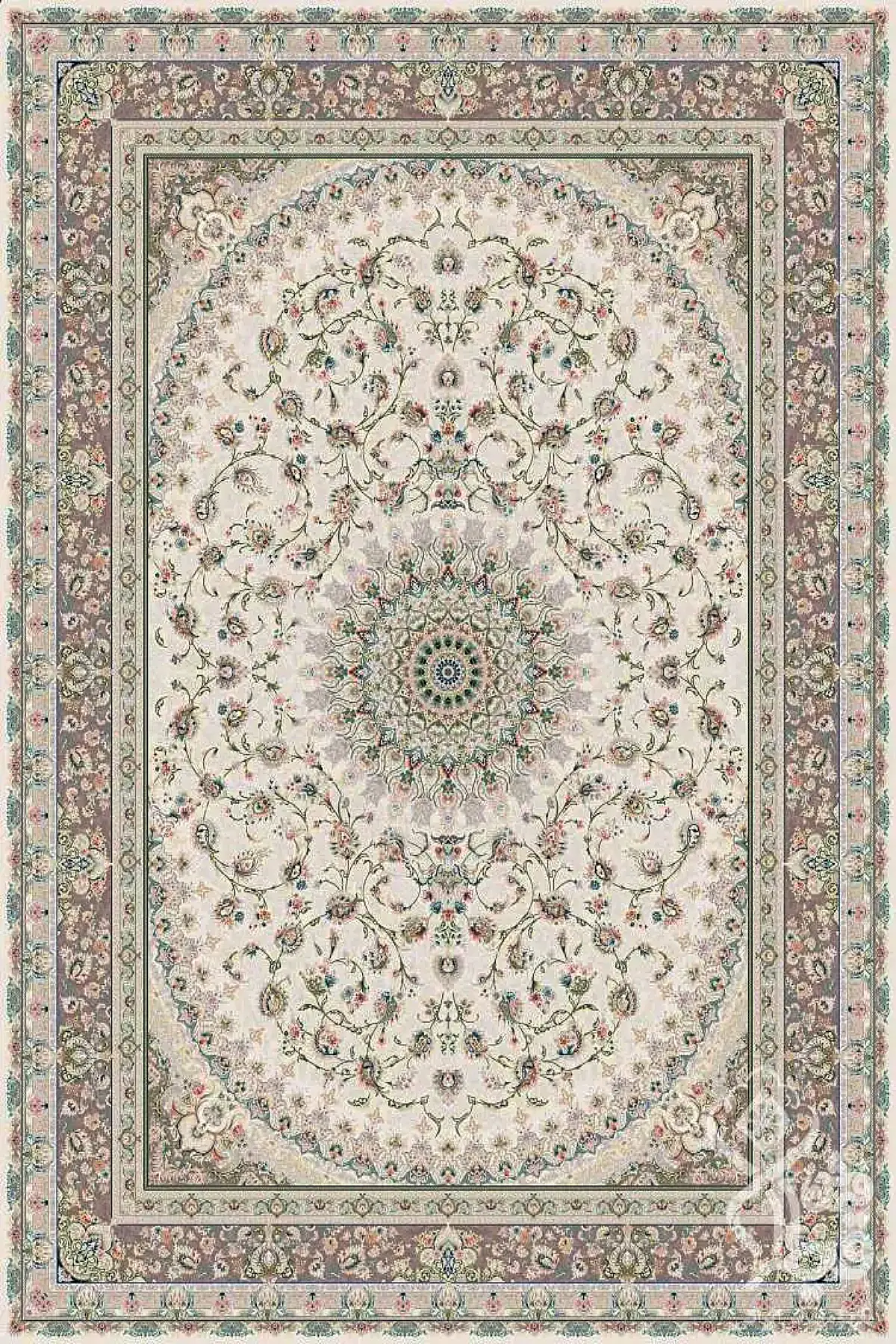 فرش قیطران 1500 شانه کلکسیون فردوس طرح ستوش زمینه کرم (برجسته)