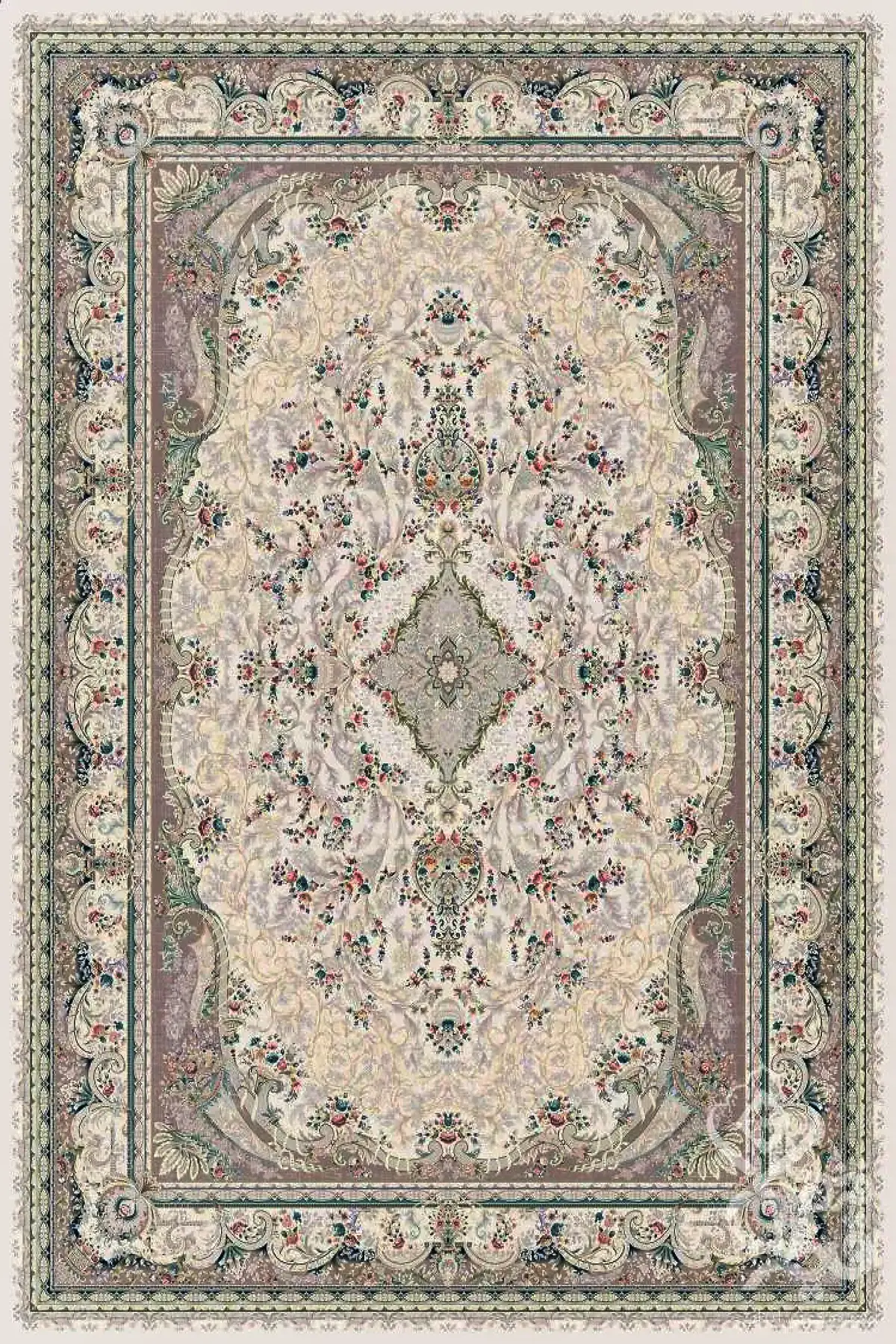 فرش قیطران 1500 شانه کلکسیون فردوس طرح مهرآیین زمینه کرم (برجسته)