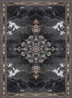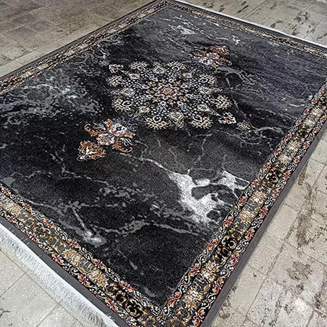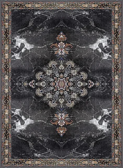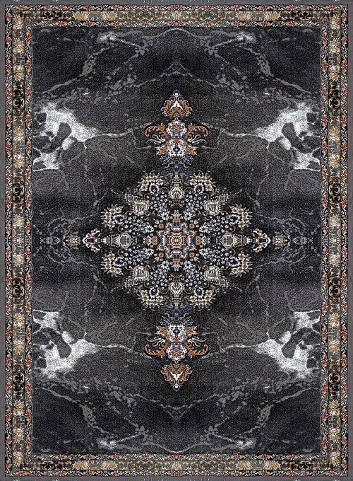 فرش ماشینی بافت رخ 440 شانه طرح سنگی زمینه دودی (غیربرجسته)