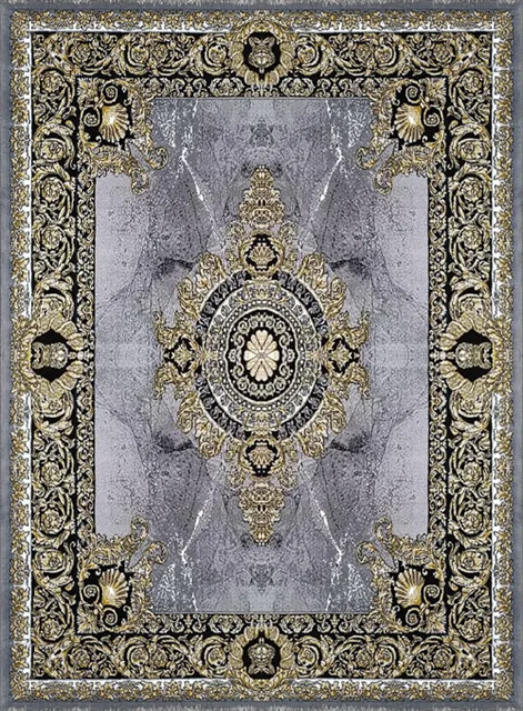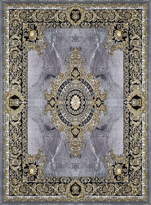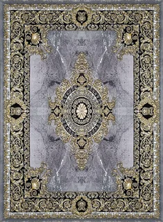 فرش ماشینی بافت رخ 440 شانه طرح ورساچه زمینه نقره ای (غیربرجسته)