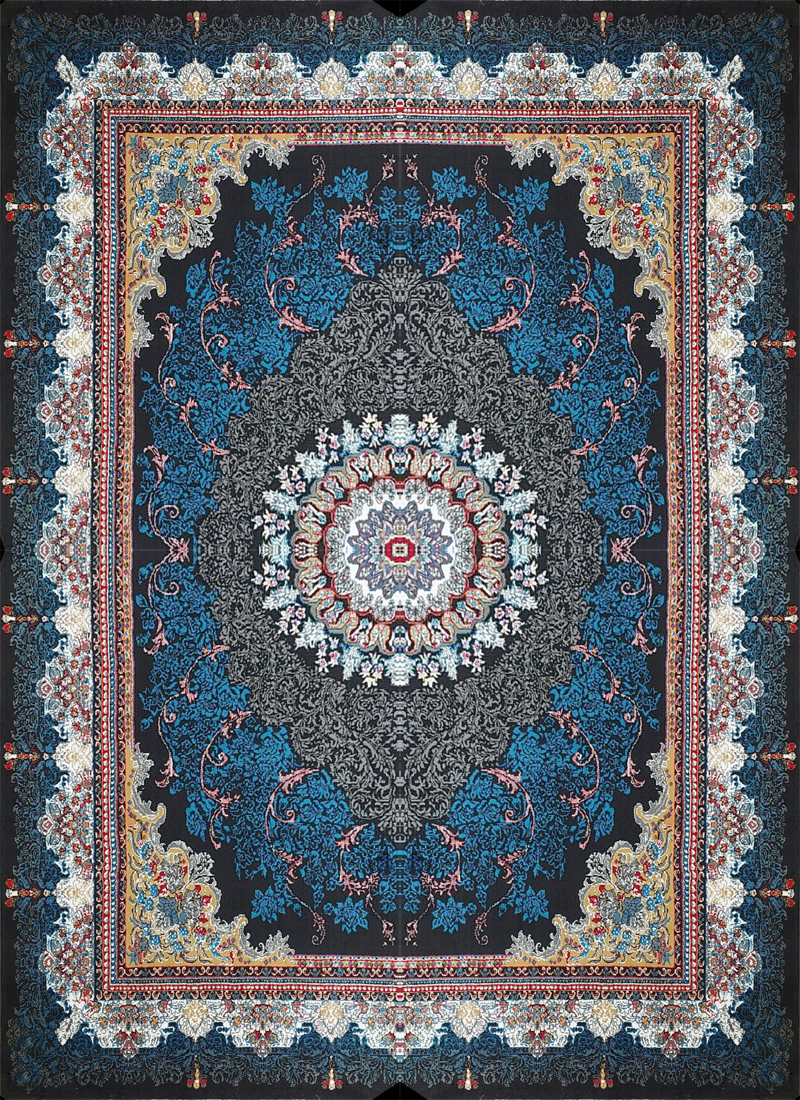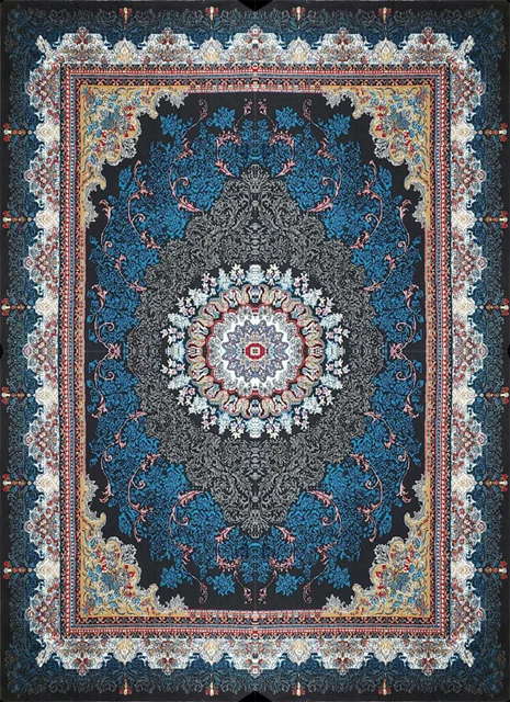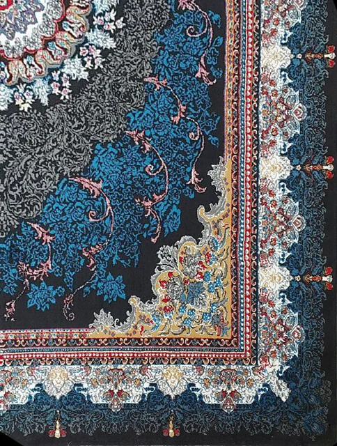 فرش ماشینی کاشان 440 شانه طرح دلاریس زمینه سومه ای (غیربرجسته)