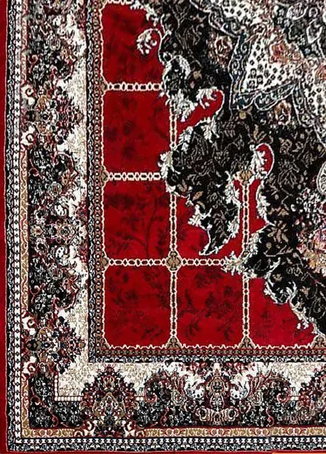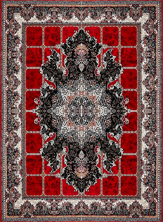 فرش ماشینی کاشان 440 شانه طرح هیوا زمینه لاکی (غیربرجسته)