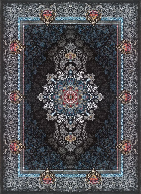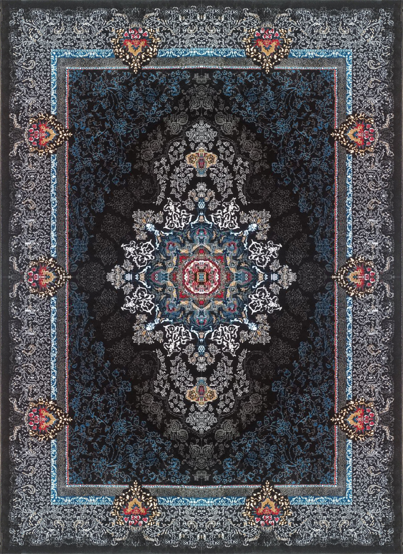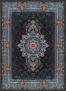 فرش ماشینی کاشان 440 شانه طرح ونیز زمینه دودی (غیربرجسته)