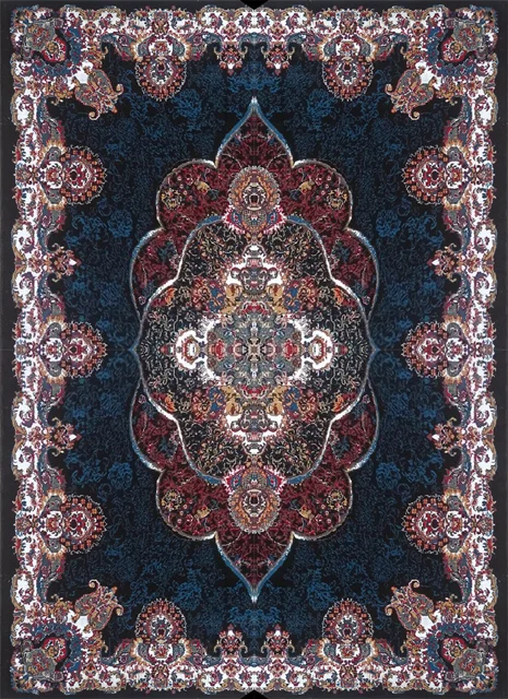 فرش ماشینی کاشان 440 شانه طرح پانیذ زمینه سومه ای (غیربرجسته)