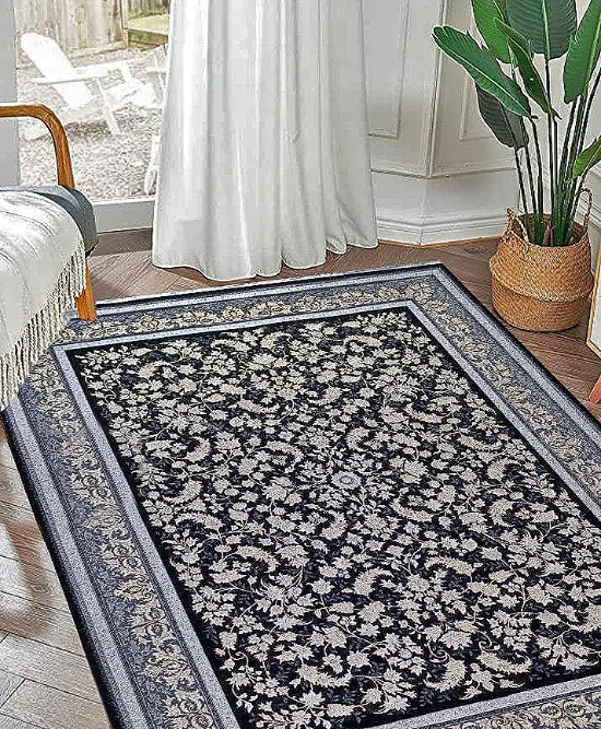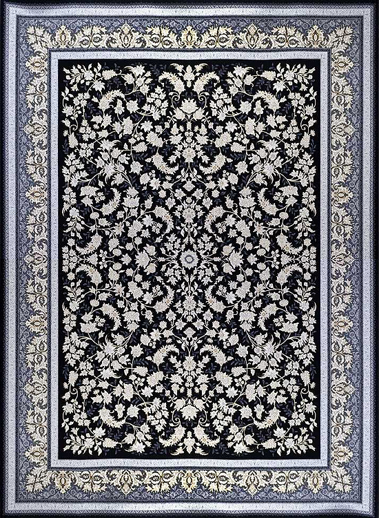 فرش ماشینی 440 شانه طرح اوستا زمینه سورمه ای (غیربرجسته)