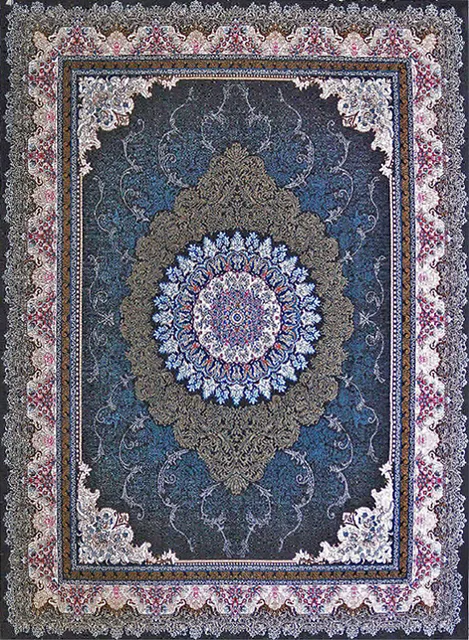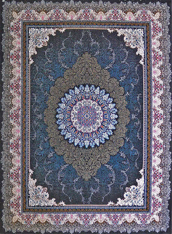فرش ماشینی 440 شانه طرح دلاریس زمینه سورمه ای (غیربرجسته)