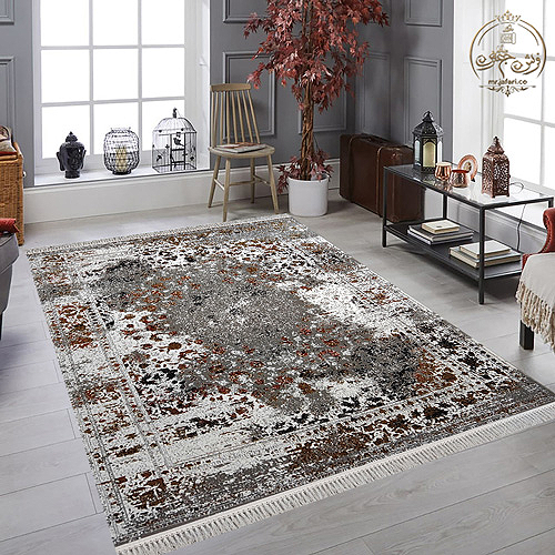 فرش ماشینی 440 شانه طرح هیرو زمینه فیلی (غیربرجسته)