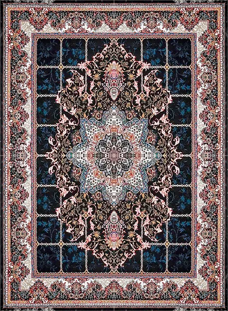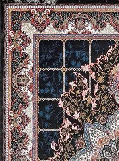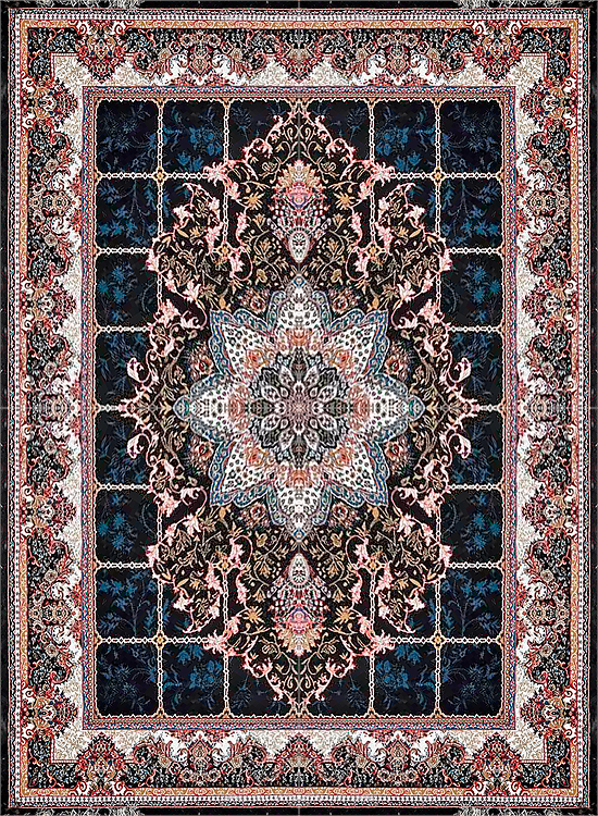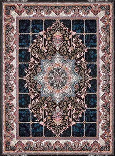 فرش ماشینی 440 شانه طرح هیوا زمینه سورمه ای (غیربرجسته)