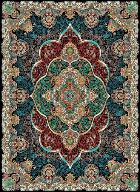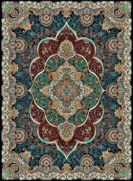 فرش ماشینی 440 شانه طرح پانیذ زمینه سورمه ای (غیربرجسته)