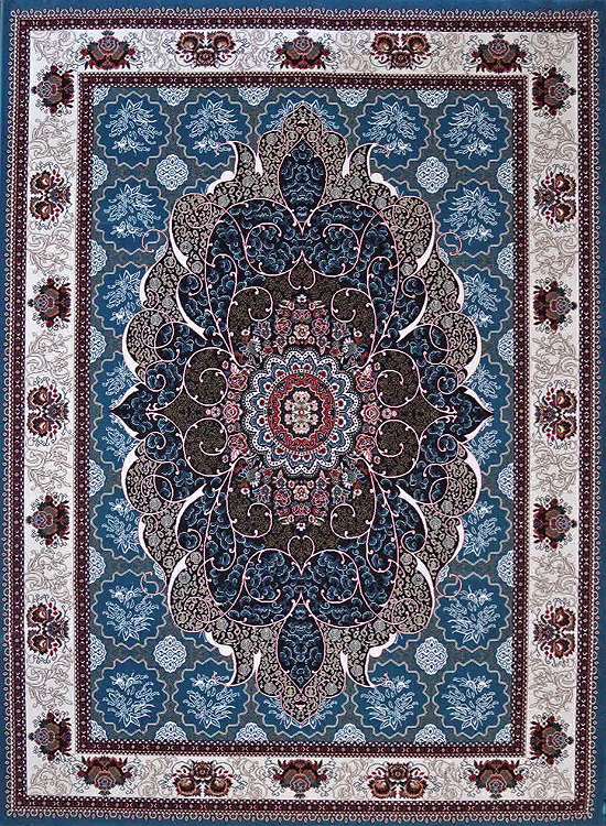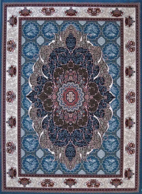 فرش ماشینی 440 شانه طرح چکاوک زمینه آبی (غیربرجسته)