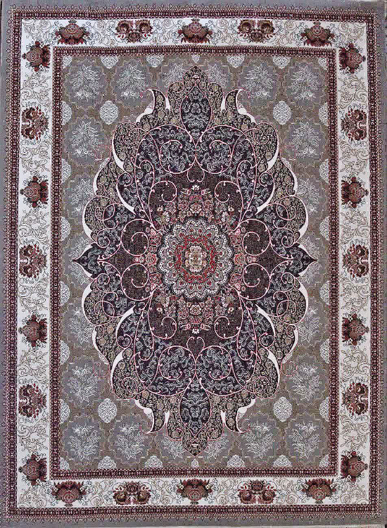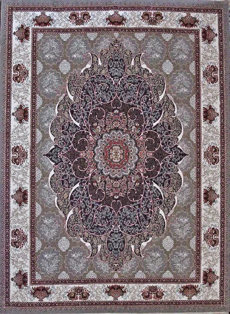 فرش ماشینی 440 شانه طرح چکاوک زمینه فیلی (غیربرجسته)