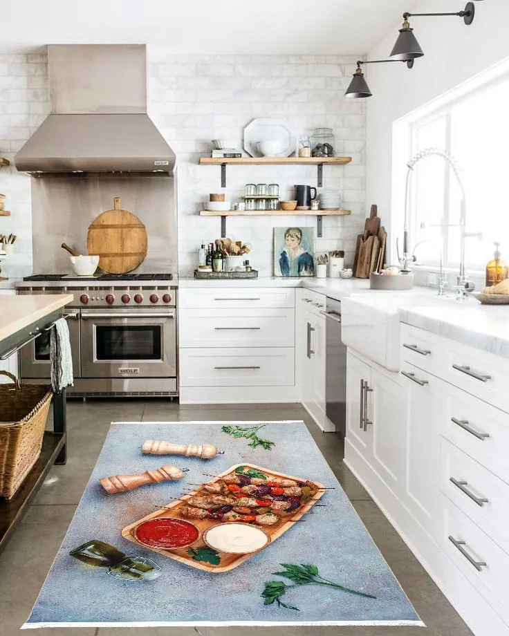 فرشی دقیقاً متناسب با ابعاد فضای خود انتخاب کنید. به نظر من، داشتن سایزهای متنوع برای فرشهای آشپزخانه و راهرو یک مزیت بسیار مهم است؛ زیرا باعث میشود چیدمان خانه حرفهایتر و منظمتر دیده شود.