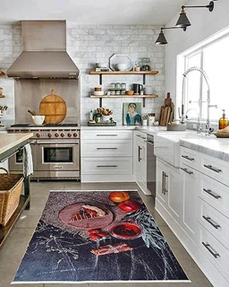 فرش محتشم آشپزخانه کد 101415 با طراحی منحصر به فرد و زمینه تمام رنگ، فضای آشپزخانه شما را به یک اثر هنری تبدیل میکند. این فرش غیر برجسته با کیفیت بالا و مقاومت در برابر سایش، انتخابی ایدهآل برای دکوراسیون مدرن و کاربردی است. زیبایی و دوام را همزمان تجربه کنید و به فضای خود جلوهای خاص ببخشید!