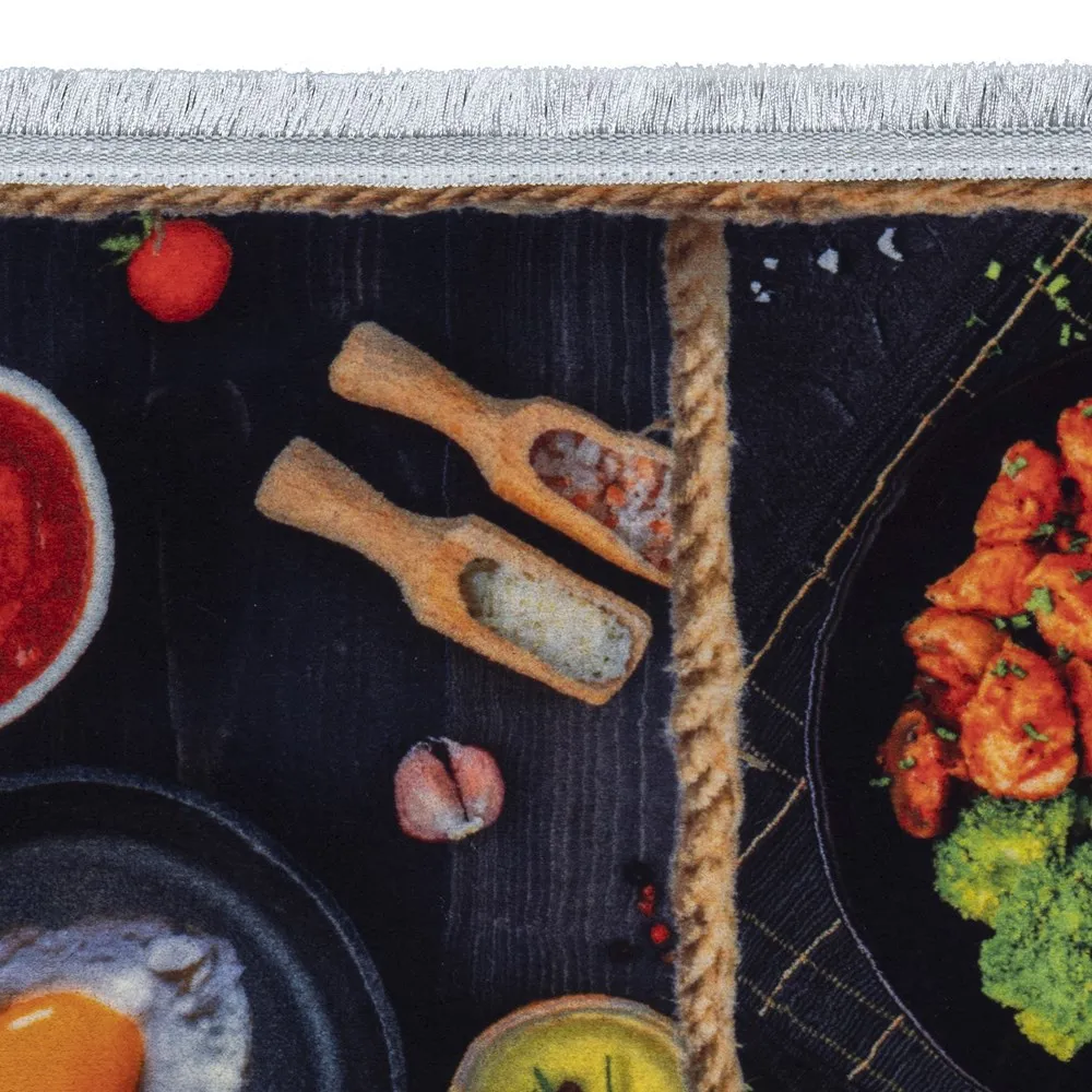 در تولید این فرش از نخ پلیاستر هیتست شده استفاده شده است. نخ پلیاستر بهطور ویژه برای محیطهایی مانند آشپزخانه که در معرض رطوبت، بخار و لکه قرار دارند، بسیار مناسب است. از مهمترین مزایای نخ پلیاستر هیتست شده در این فرش میتوان به موارد زیر اشاره کرد: