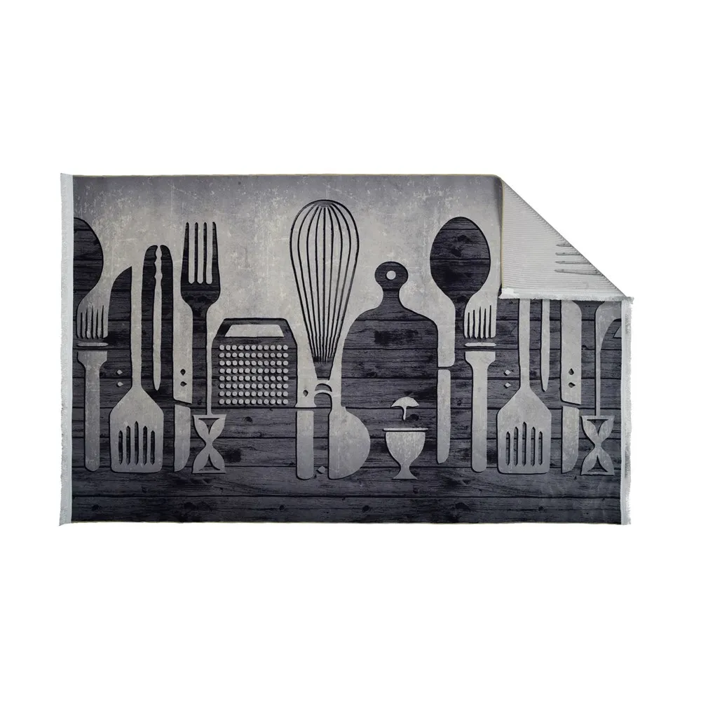 فرش محتشم آشپزخانه کد 101483 زمینه خاکستری (غیربرجسته)