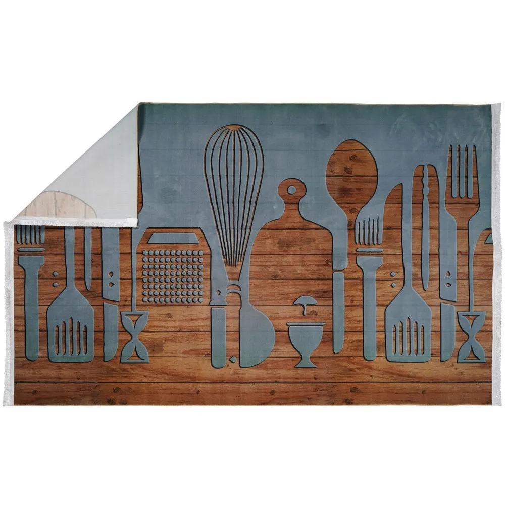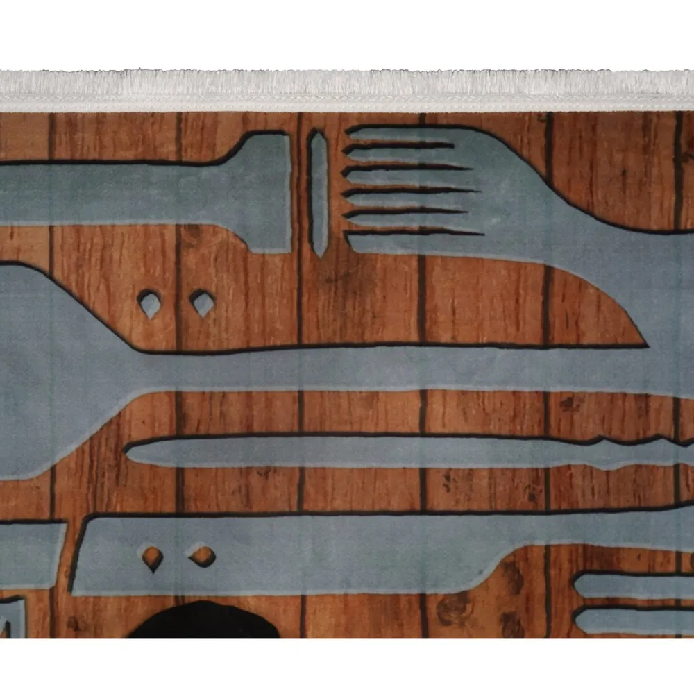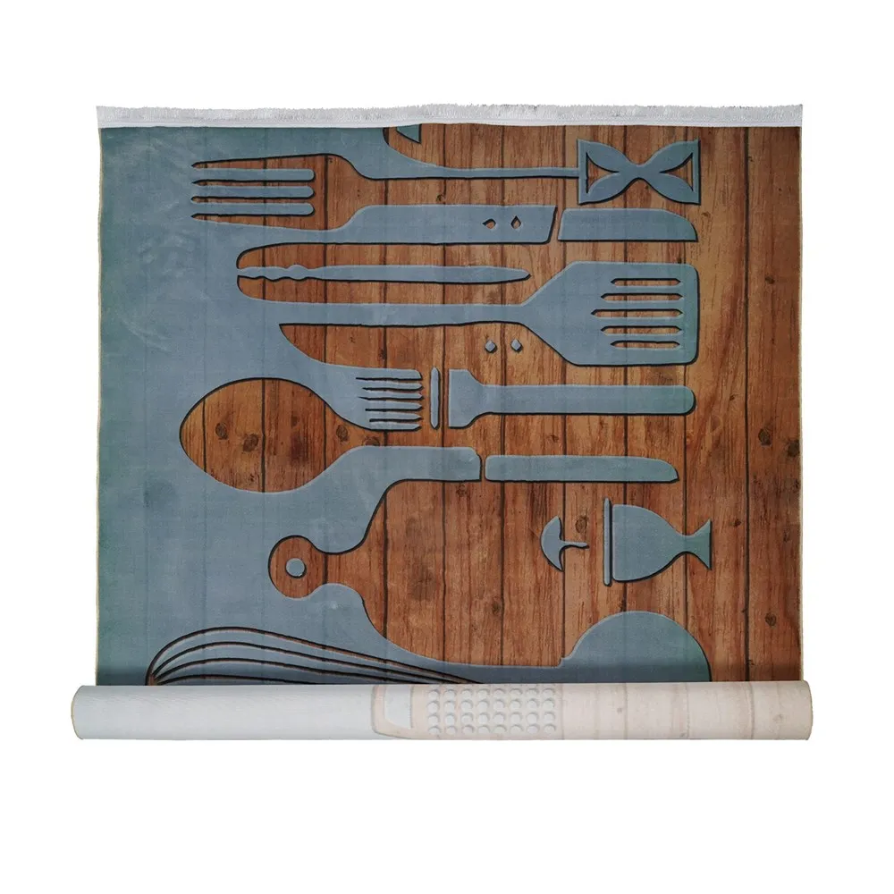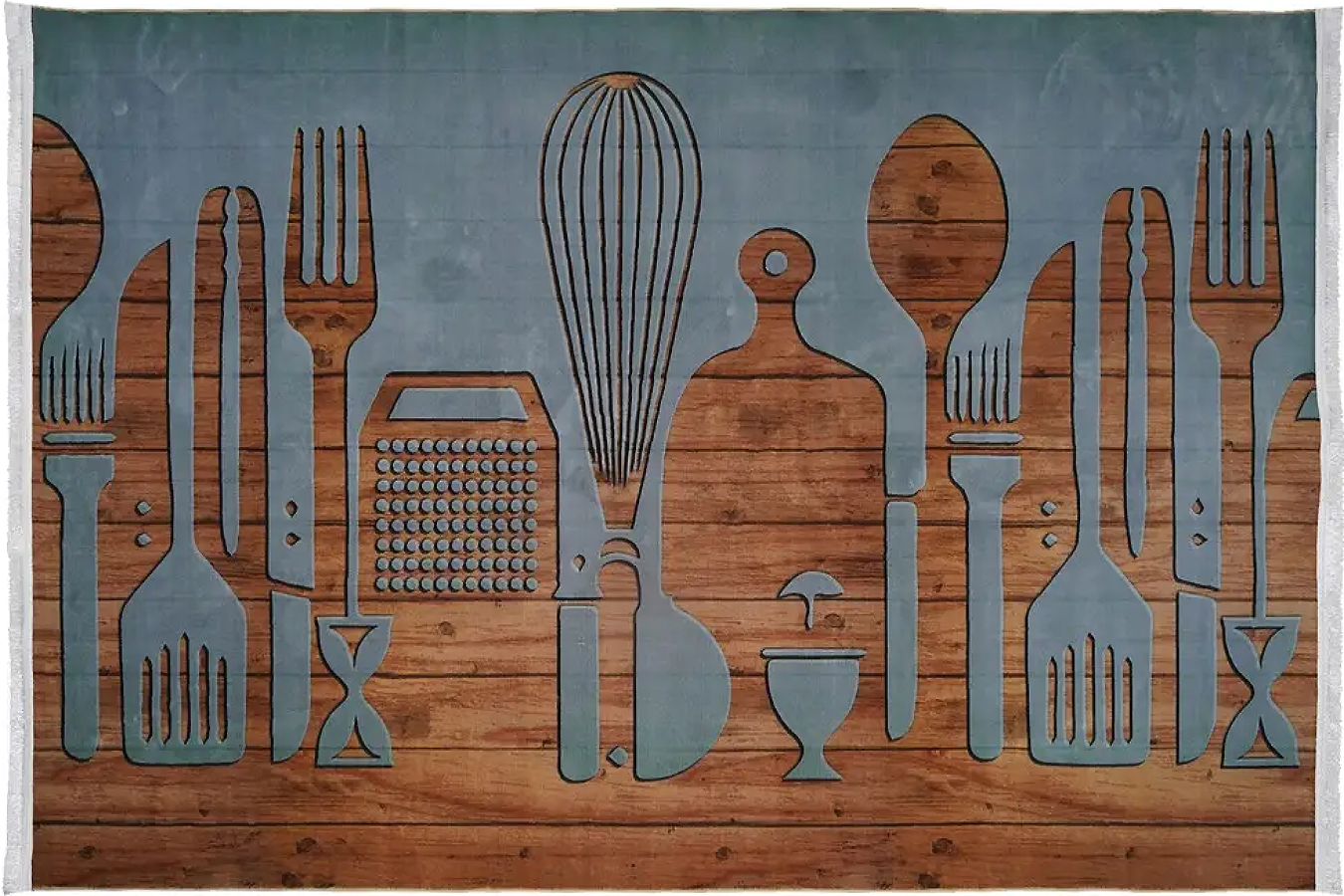 فرش محتشم آشپزخانه کد 101483 زمینه قهوه ای (غیربرجسته)