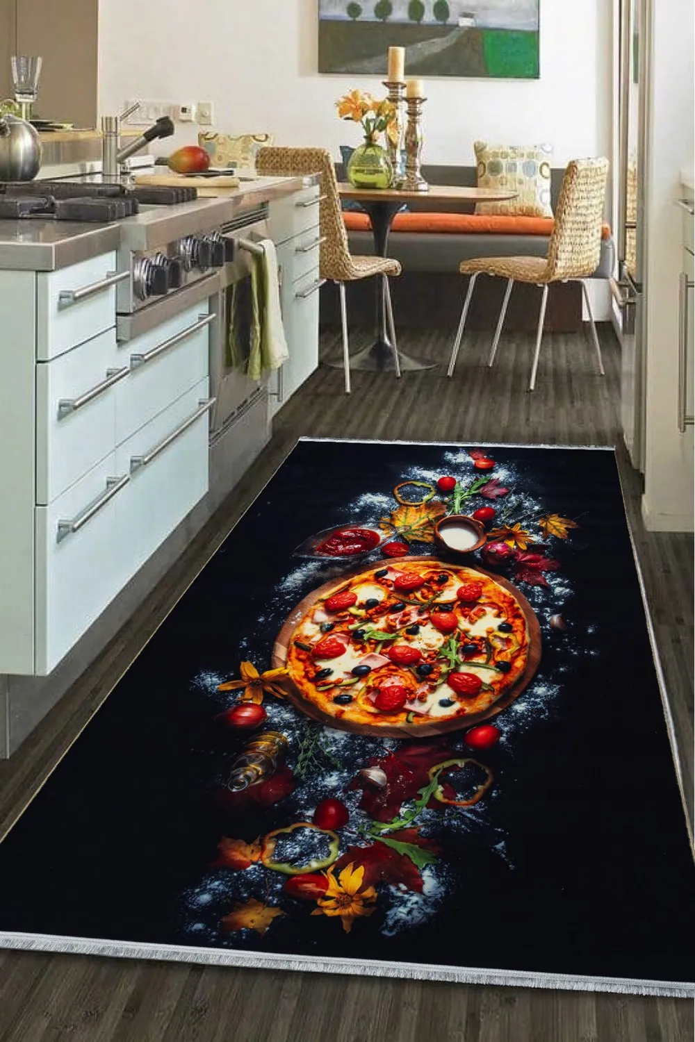 فرشی دقیقاً متناسب با ابعاد فضای خود انتخاب کنید. به نظر من، داشتن سایزهای متنوع برای فرشهای آشپزخانه و راهرو یک مزیت بسیار مهم است؛ زیرا باعث میشود چیدمان خانه حرفهایتر و منظمتر دیده شود.