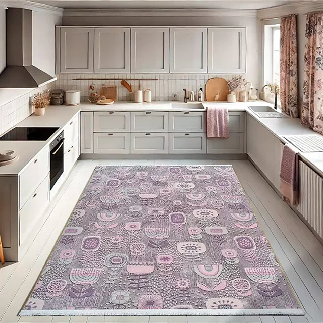 فرش محتشم آشپزخانه کد 25AA0120 زمینه طوسی (غیربرجسته)