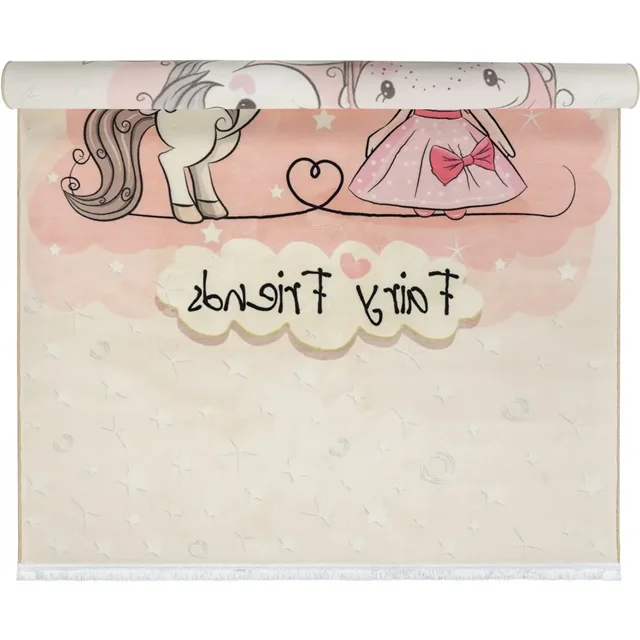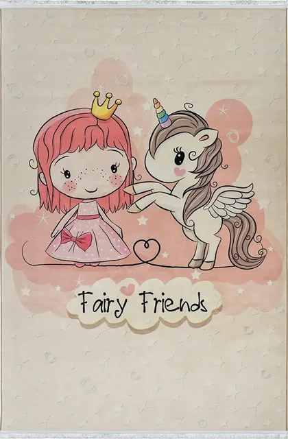 فرش محتشم اتاق کودک طرح اسب تک شاخ کد 25KD0040 زمینه صورتی (غیربرجسته)