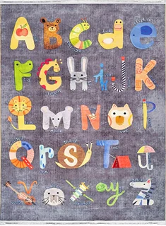 فرش محتشم اتاق کودک طرح الفبا کد 2599016090 زمینه تمام رنگ (غیربرجسته)