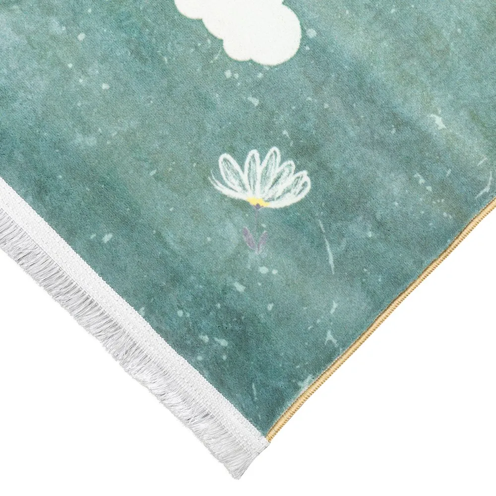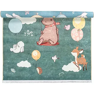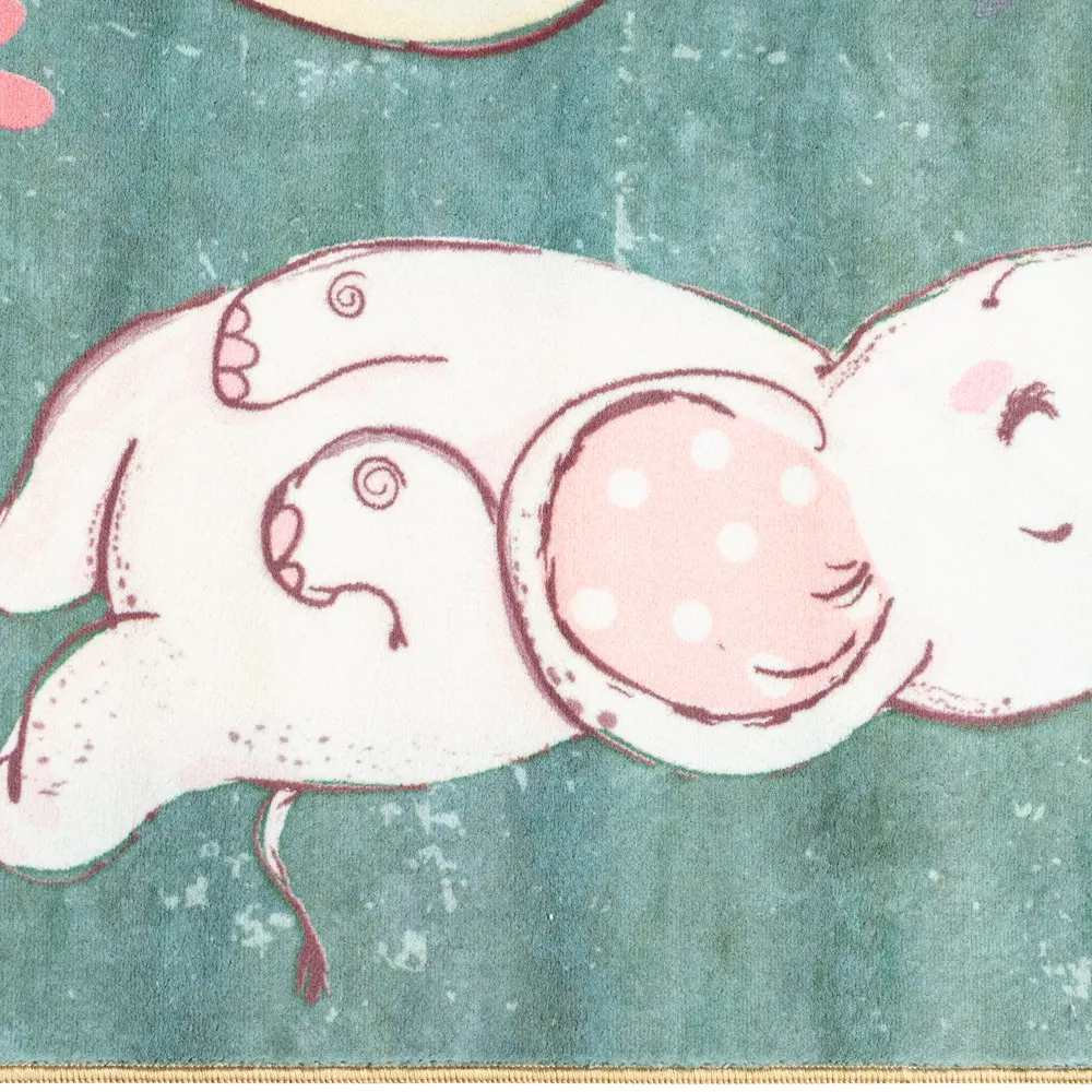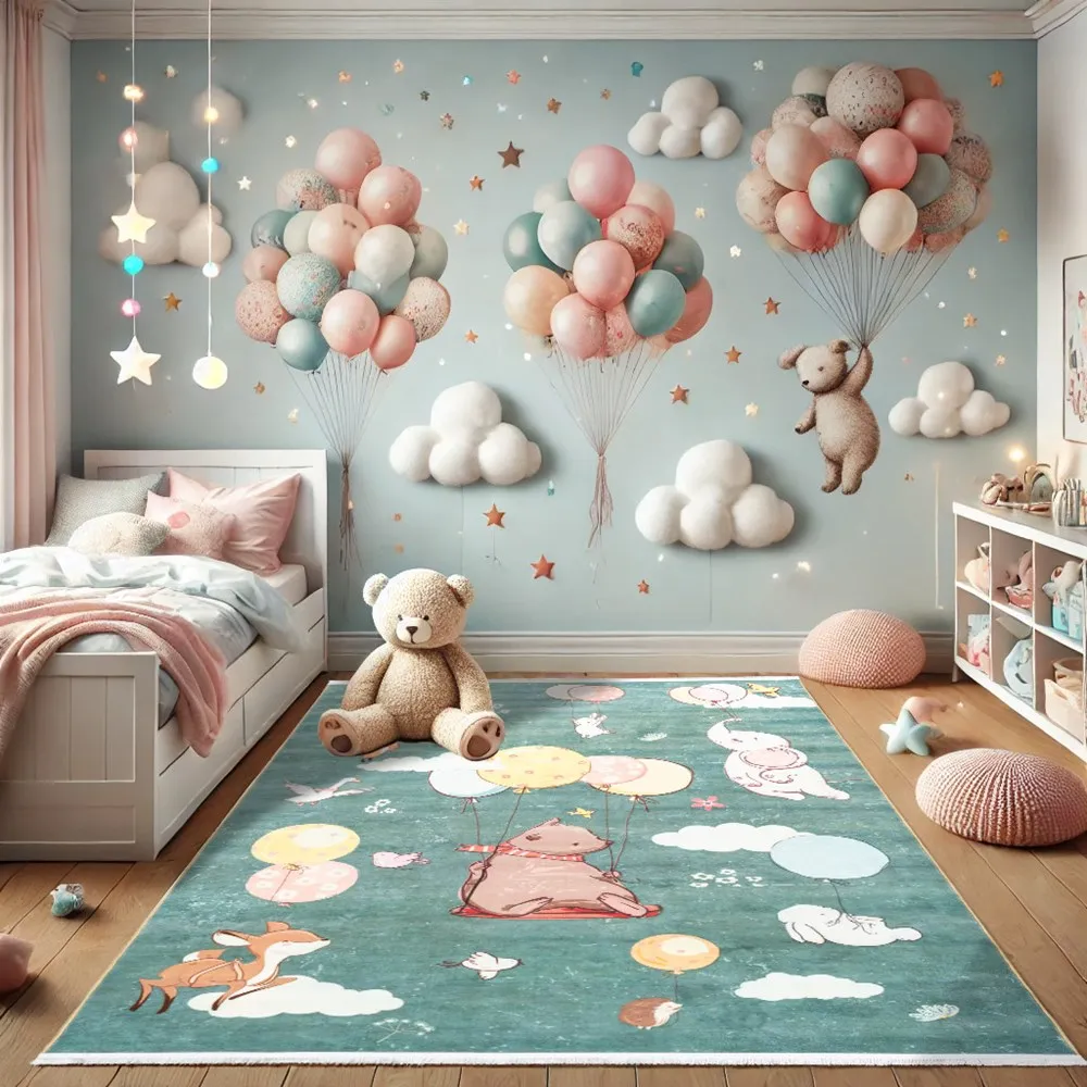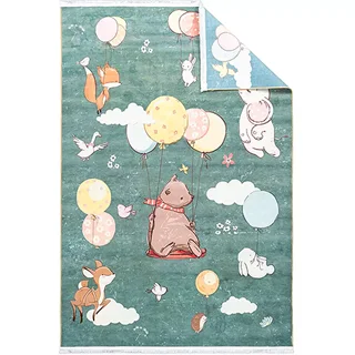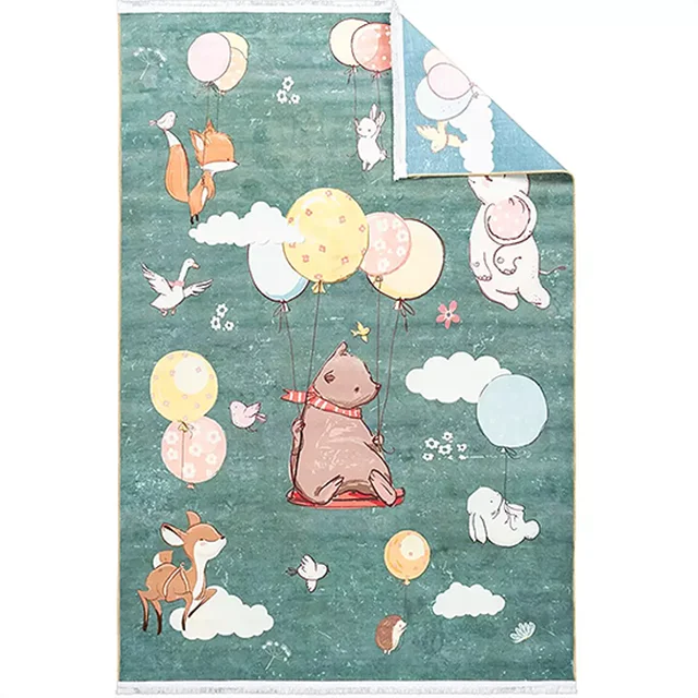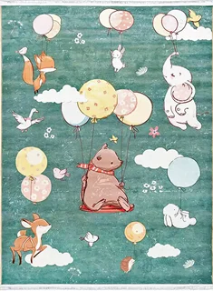 فرش محتشم اتاق کودک طرح بالن سوار کد 25KM0080 زمینه سبز (غیربرجسته)