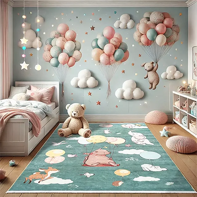 با فرش محتشم اتاق کودک طرح بالن سوار، دنیای خیالانگیز و شاد را به اتاق کودکتان بیاورید! با زمینه سبز و طراحی دلنشین، این فرش غیر برجسته نه تنها زیبایی را به فضا هدیه میدهد، بلکه محیطی امن و راحت برای بازی و استراحت کودک فراهم میکند. انتخابی ایدهآل برای خلق لحظات شاد و رنگارنگ!