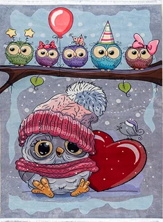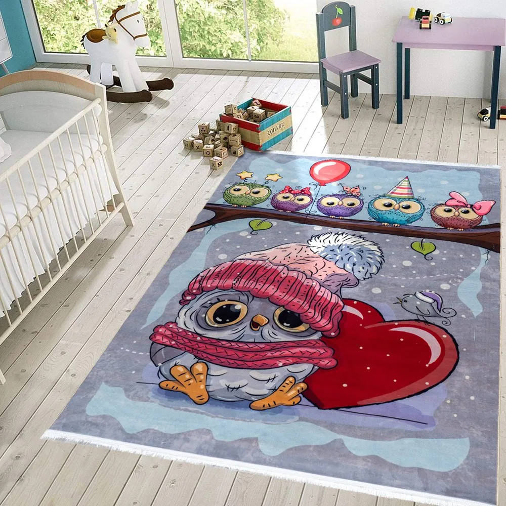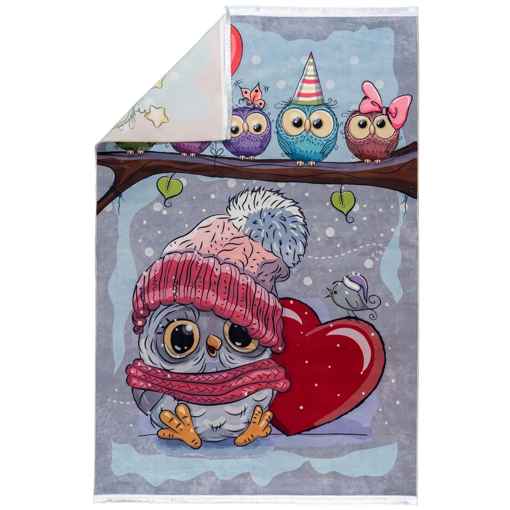 فرش محتشم اتاق کودک طرح جغدهای فانتزی کد 101205 زمینه تمام رنگ (غیربرجسته)