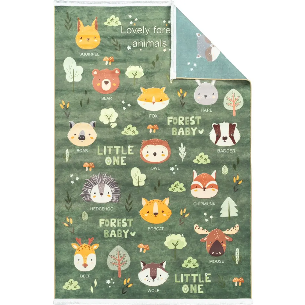 فرش محتشم اتاق کودک طرح جنگل حیوانات کد 25KM0070 زمینه سبز (غیربرجسته)